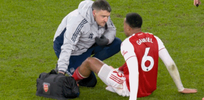 下半场比赛中,加布里埃尔受伤倒地接受治疗,而他似乎被过来的队友因卡皮耶踩中手指,随后他迅速拿起手还甩了甩。
