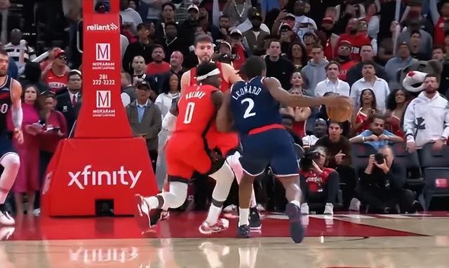 快船落后2分保有球权,但接下来一个回合,伦纳德一个非常隐蔽的发力动作被吹进攻犯规,伦纳德甚至没用肘尖顶人,只是用手臂发力,但霍乐迪倒得很彻底,快船挑战也失败了。